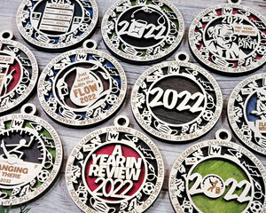 Introducing the 2022 Themed Ornaments. In total there are 10 central themes to choose from that also include a number of icons related to 2022 (Wordle tile, James Webb telescope, Stock market crash, Gas pump, World cup soccer ball, Will Smith slapping Chris Rock, Mask, Truck, Queen Elizabeth, Olympic torch, Amber’s Hurd). This ornament is a great keepsake