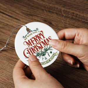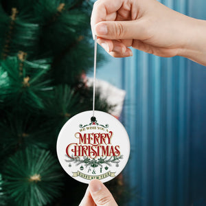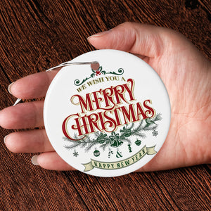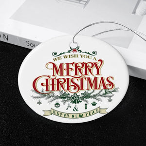 Merry Christmas & Happy New Year Ceramic Ornament, Holiday Tree Decoration Gift
