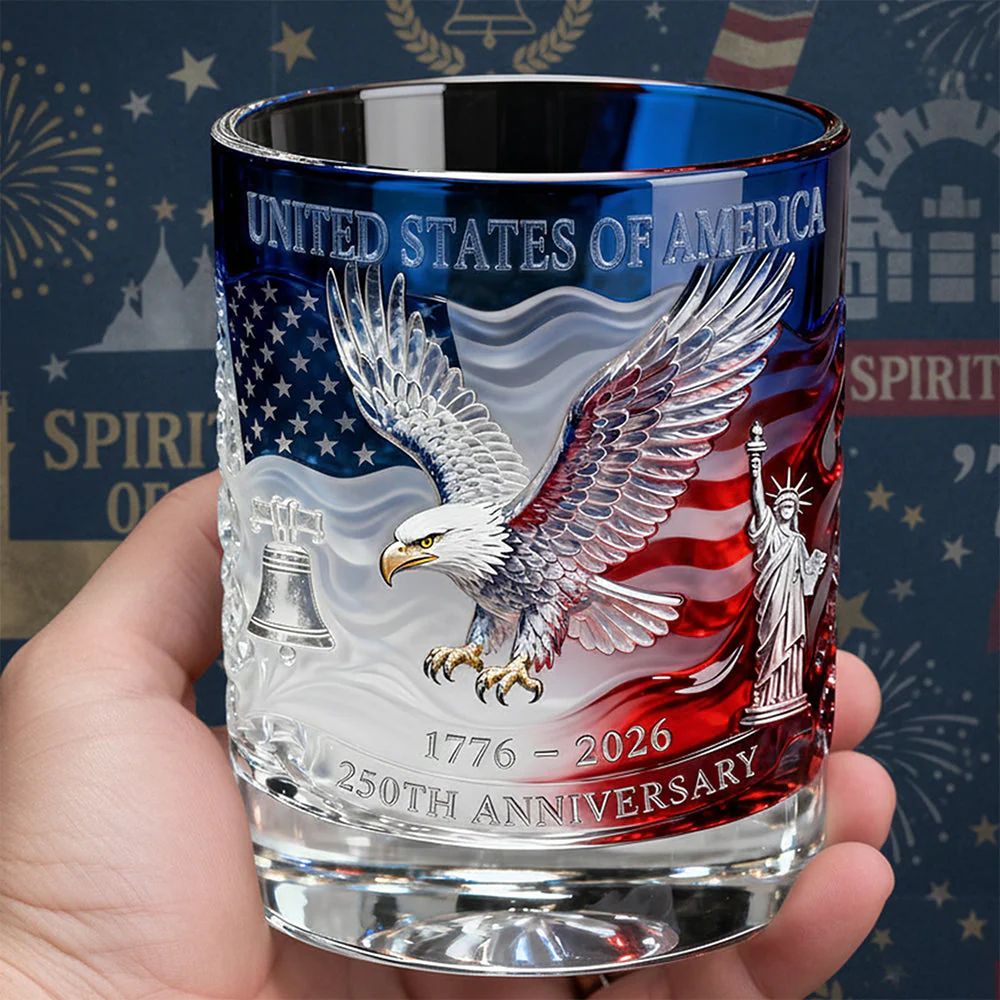 250th Anniversary Bald Eagle American flag Personalized Whiskey Glass, 4th Of July Gift