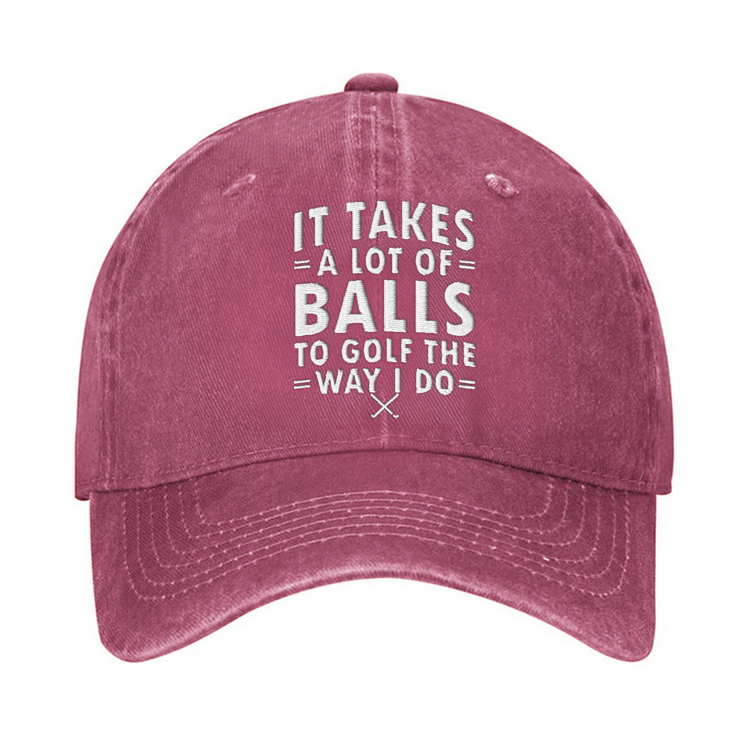 Add a bold touch of humor to your golf game with this hilarious embroidered cap! Featuring the cheeky phrase "It Takes A Lot Of Balls To Golf The Way I Do," this cap is perfect for golfers who aren’t afraid to laugh at their own game.