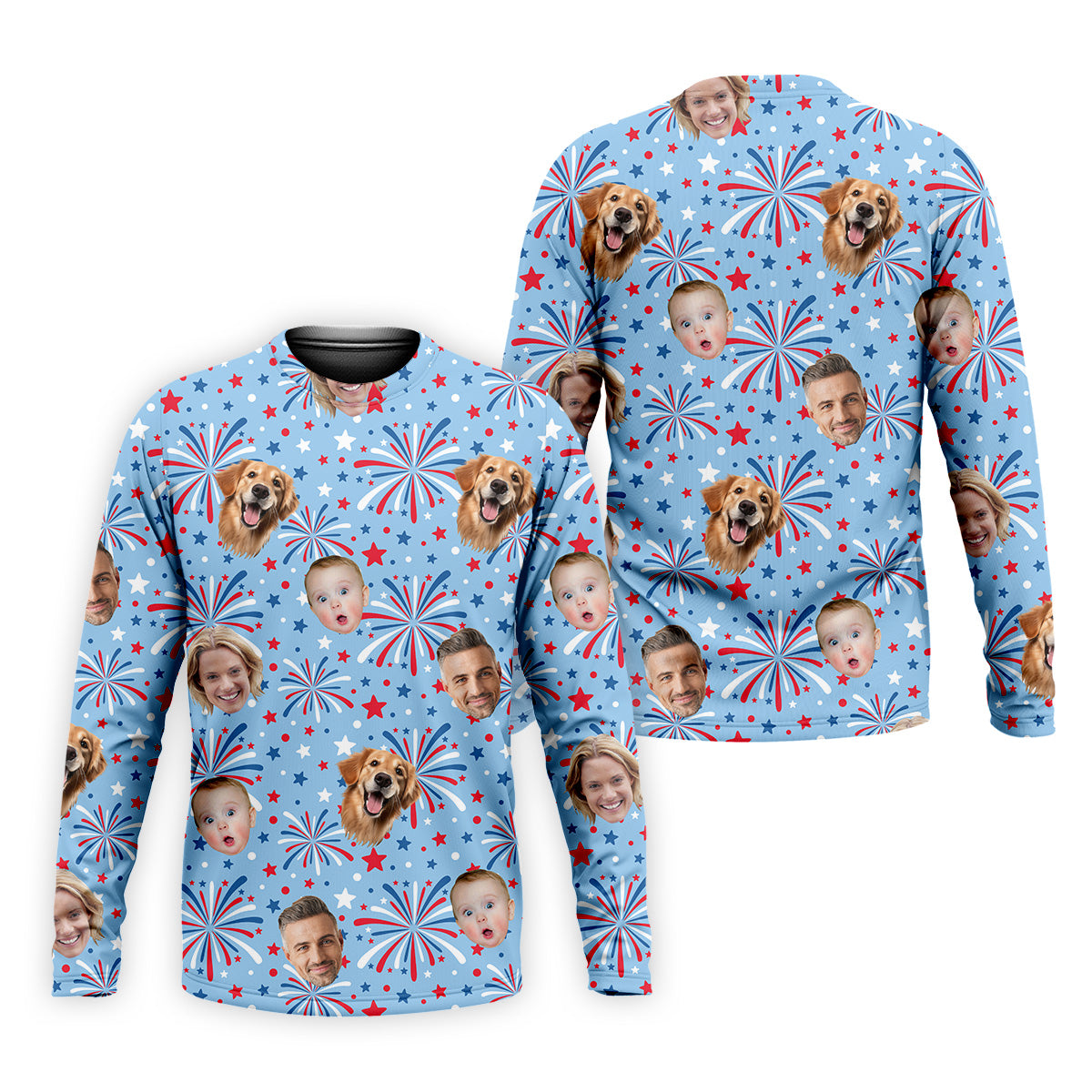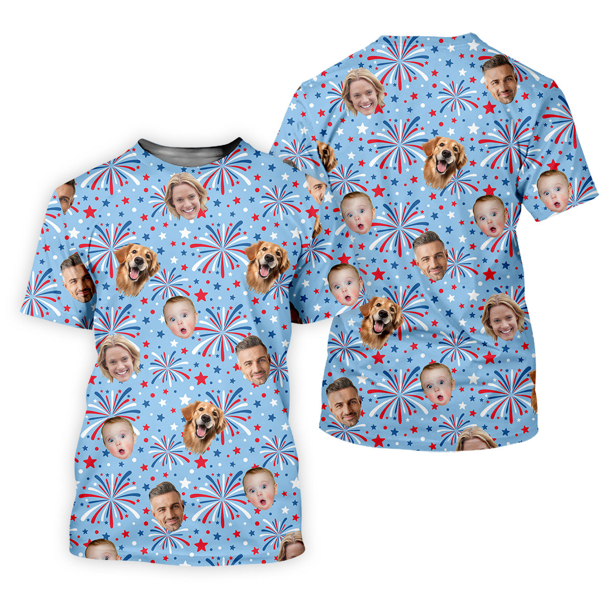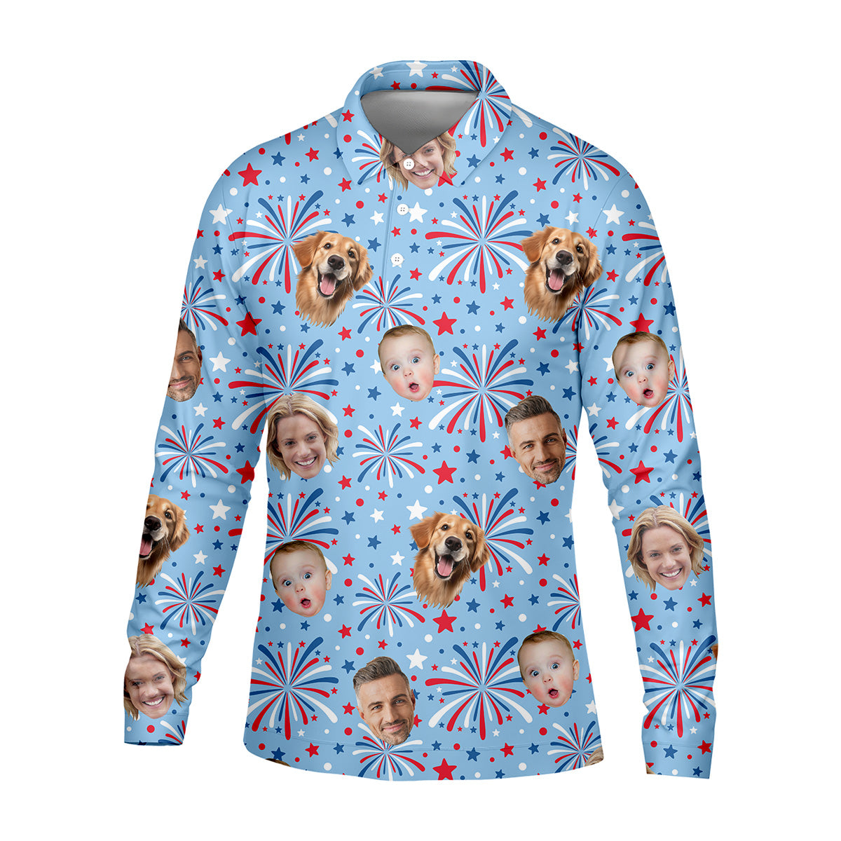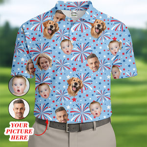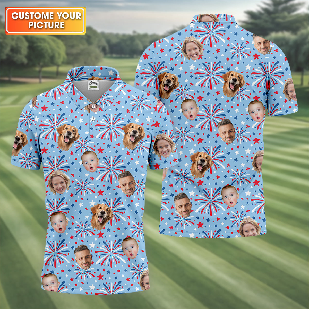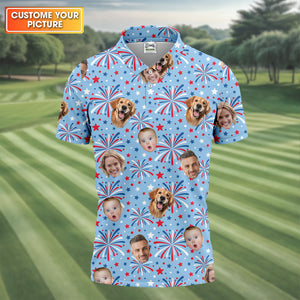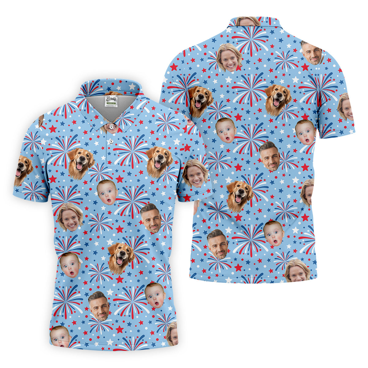 4th Of July Custom Shirts With Faces, Patriotic Golf Shirt, Men's Golf Polo Shirt, USA Golf Shirt