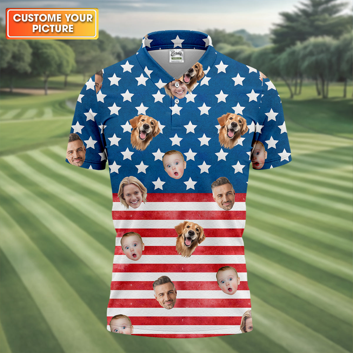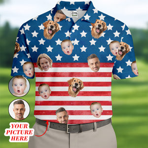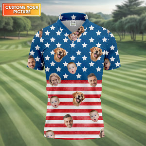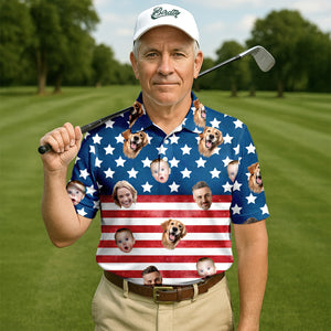 4th Of July Golf Polo, Custom Shirts With Faces, Men's Golf Polo Shirt, Funny Fourth Of July Shirts