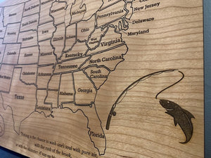 50 States Fishing Tracker Board, States Tracker, Gift For Fishers