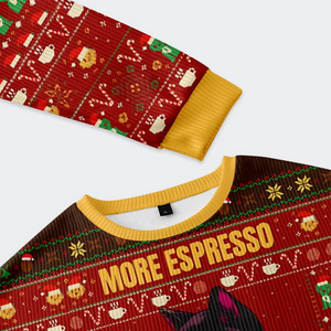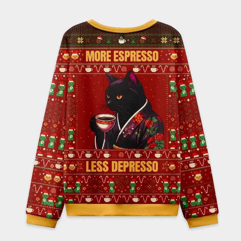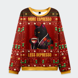 A Cat Drinking Coffee More Espresso Less Depresso Funny Ugly Sweater, Ugly Xmas Sweater, Christmas Ugly Sweatshirt