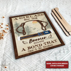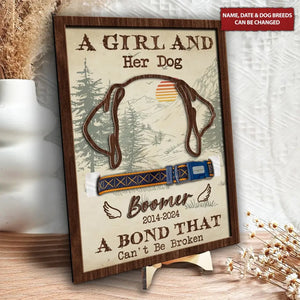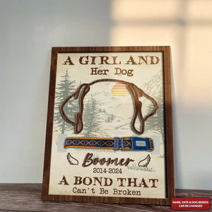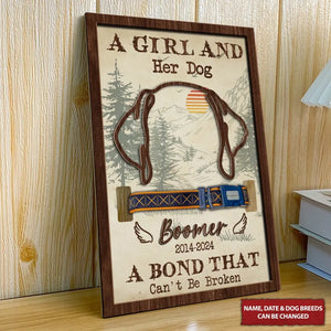 A Girl And Her Dog Custom Dog Ears Memorial Pet Collar Frame, Gift For Pet Lovers
