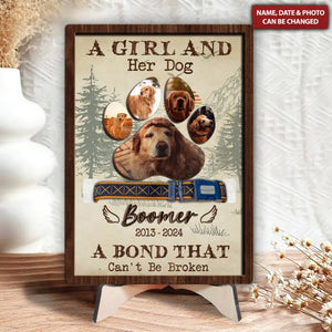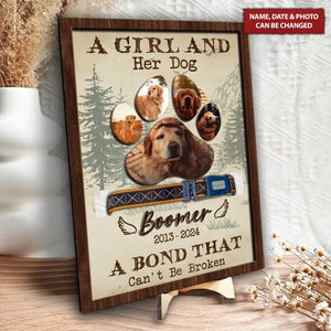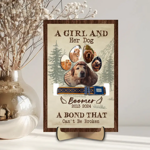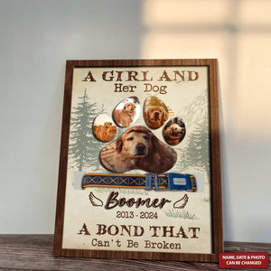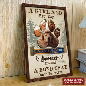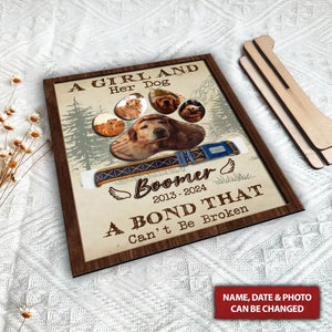 A Girl And Her Dog Personalized Dog Paw Memorial Pet Collar Frame, Gift For Pet Lovers