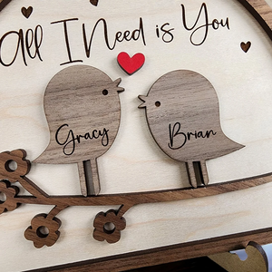 All I Need Is You Love Birds Wood Sign, Personalized Gifts For Couples, Valentine's Day Gift For Her