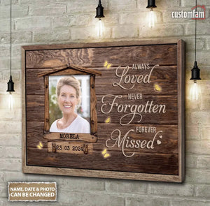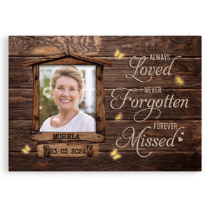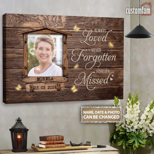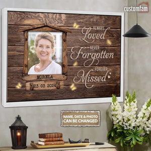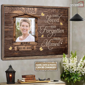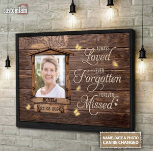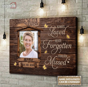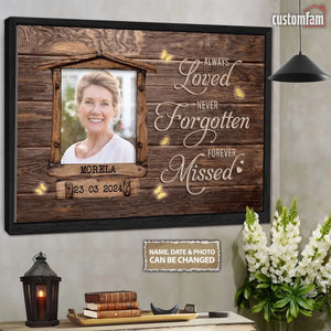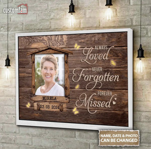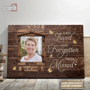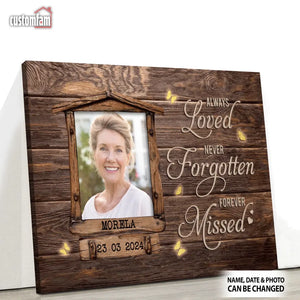 Always Loved Never Forgotten Forever Missed Personalized Canvas Prints, Custom Portrait Photo Memorial Framed Canvas, Remembrance Gifts, Loss Dad Mom Gift, Memorial Gifts