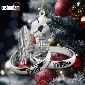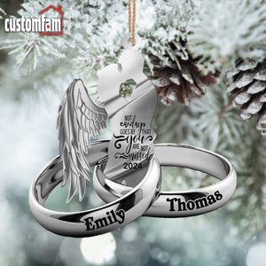Honor the memory of a loved one this holiday season with our Always On My Mind Custom Husband Wife With Wings Metal Ornament. This beautifully crafted ornament serves as a heartfelt tribute, symbolizing everlasting love and cherished memories. Designed with delicate angel wings embracing a personalized name or message, this ornament is a touching reminder of the special connection that lives on, even when a loved one is no longer physically present.
