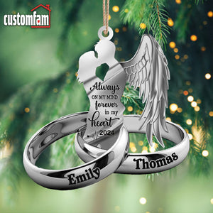Always On My Mind Custom Husband Wife With Wings Metal Ornament, Memorial Gifts