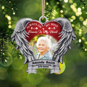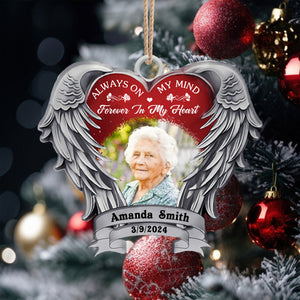 Always On My Mind Custom Photo Heart Shaped Metal Ornament, Memorial Christmas Gifts