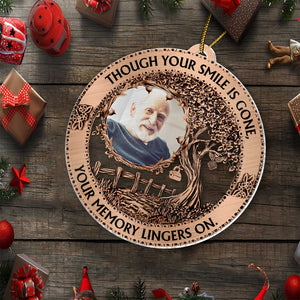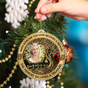 An emotional way to honor loved ones who have passed away is with this memorial ornament. It is crafted with exquisite precision and has a tranquil setting with a lovely tree, signifying an enduring link. A picture of your loved one can be added to the middle to make it a special and intimate remembrance. A personalized quote can be added to the ornament, providing solace and memories in the form of lines like "Those we love don't go away; they walk beside us every day."