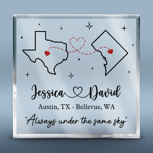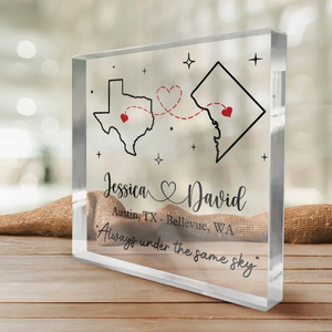Bridge the miles with love and connection through the "Always Under The Same Sky" Acrylic Plaque, the perfect gift for couples in long-distance relationships. This personalized keepsake serves as a constant reminder that no matter how far apart, you’re always connected by the same sky.