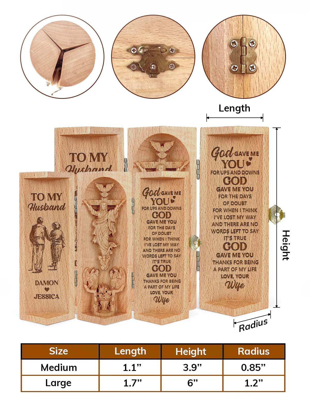God Gave Me You, Personalized Openable Wooden Cylinder Sculpture of Jesus Christ, Christian Gifts