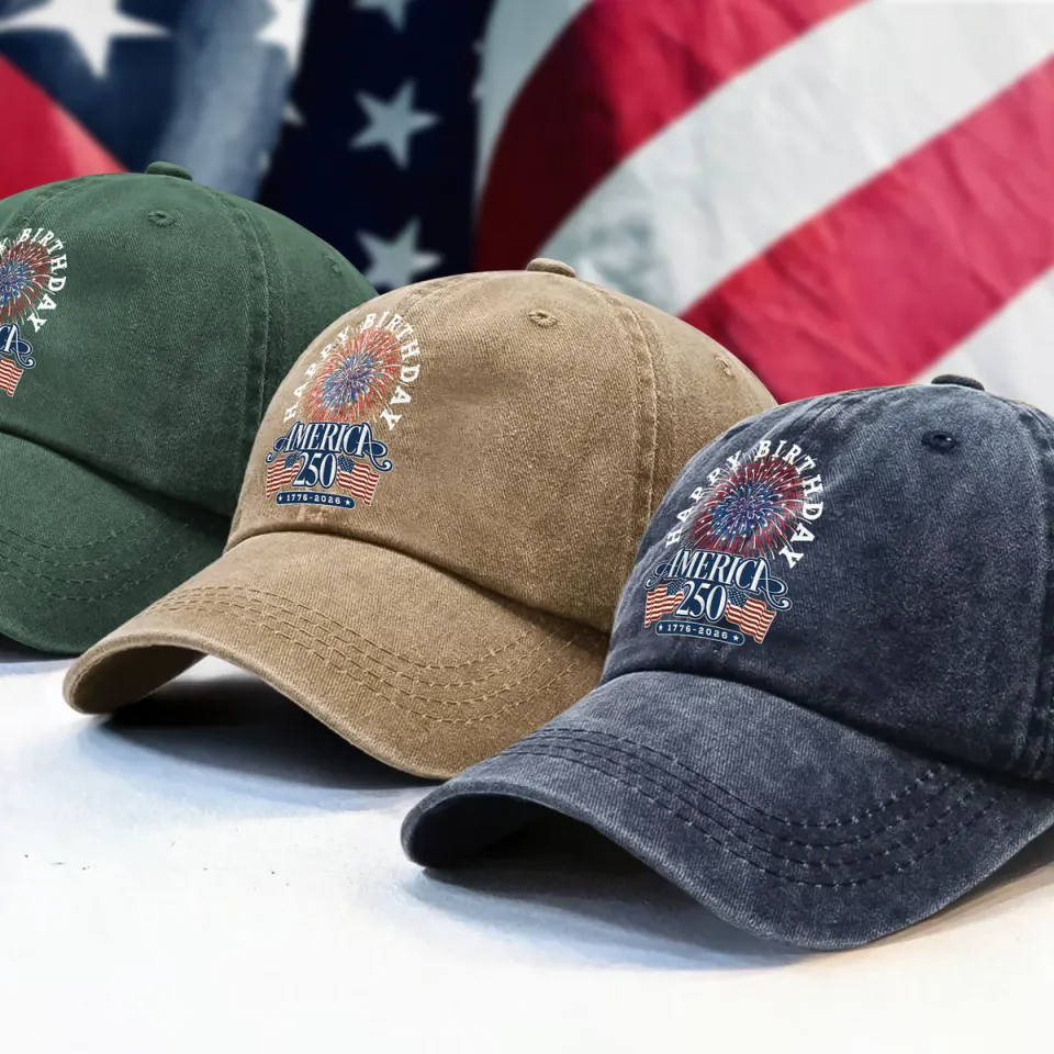America 250 Semiquincentennial Fireworks Celebration Washed Denim Baseball Cap, American Patriotic Gift