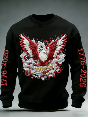 America 250th Anniversary Hoodie, Patriotic Eagle Flag Pullover, Black Hooded Jumper 4th Of July Gift