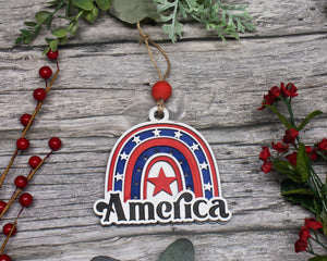 America Rainbow Christmas Ornament, Patriotic Ornament, American Flag Ornament, 3-Layer Wooden Ornament