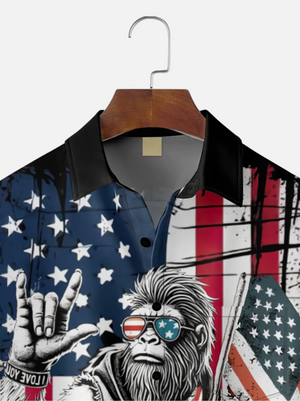 American Flag Bigfoot Patriot Black Hawaiian Golf Shirt, 250th Anniversary Tropical Vibe Men's Golf Shirt