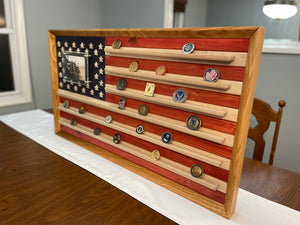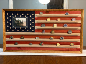 Celebrate Dad's service and dedication with our American Flag Challenge Coin Rack and Wooden Photo Frame, the perfect gift for Veteran's Day. This beautifully crafted piece combines functionality and sentimentality, making it an exceptional addition to any veteran's collection.