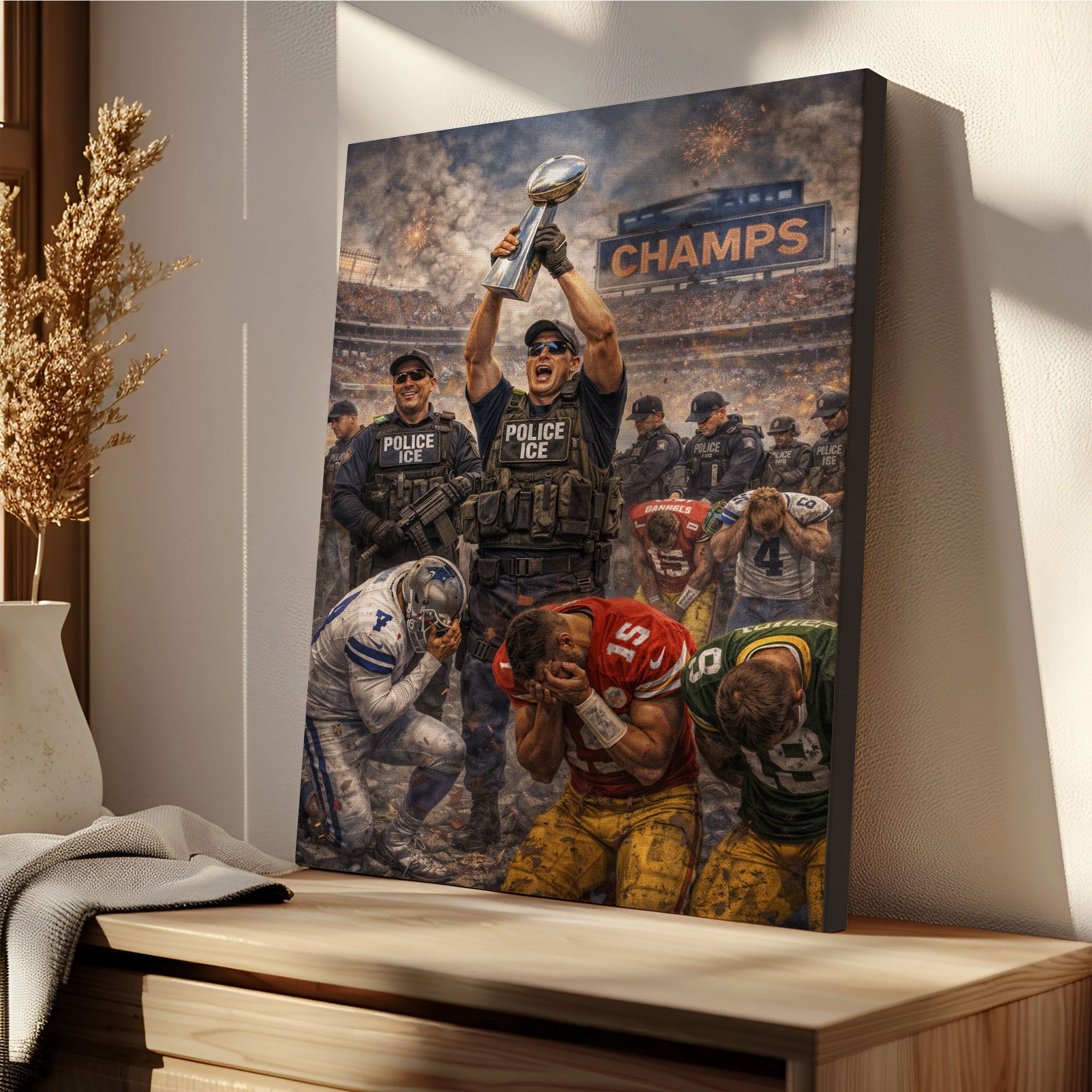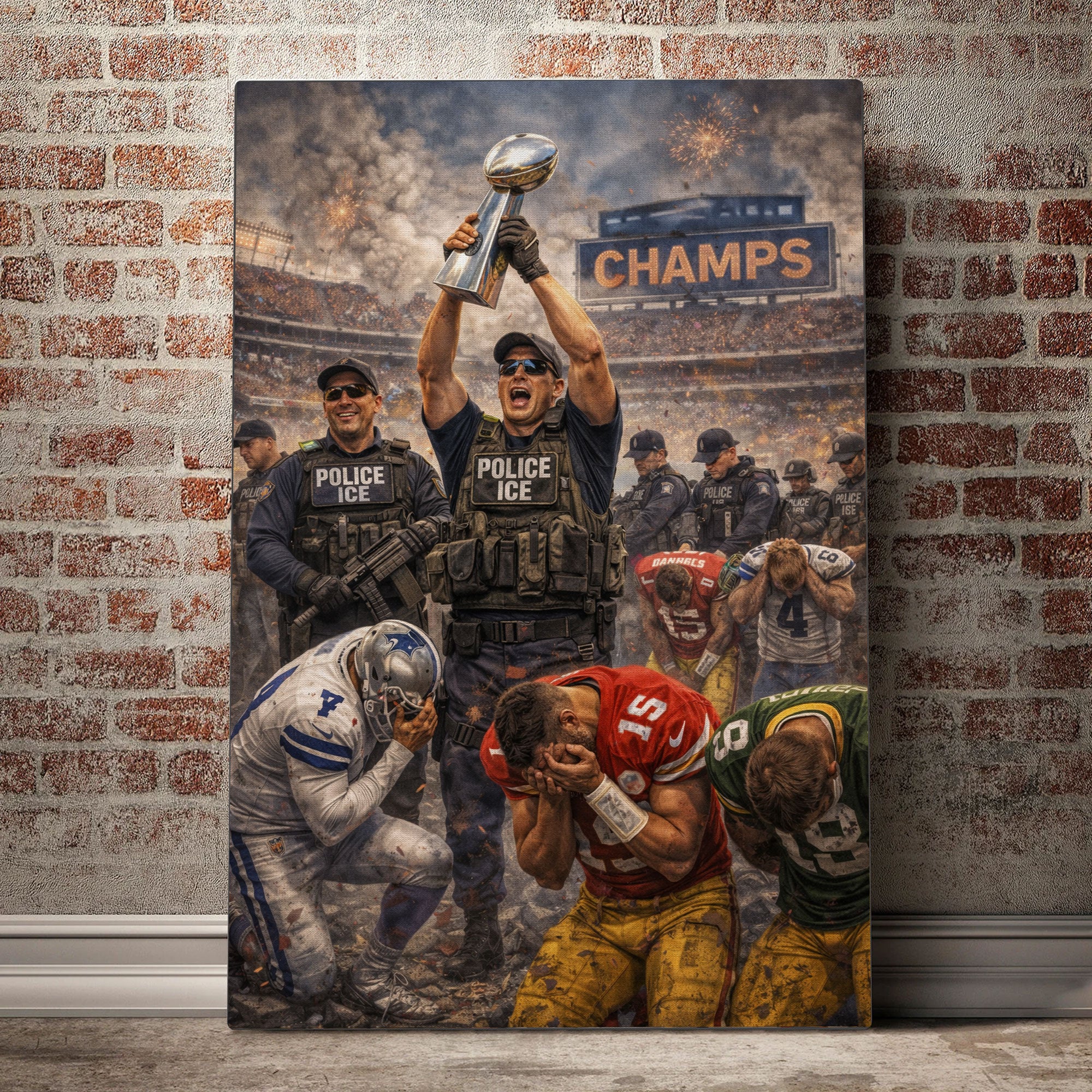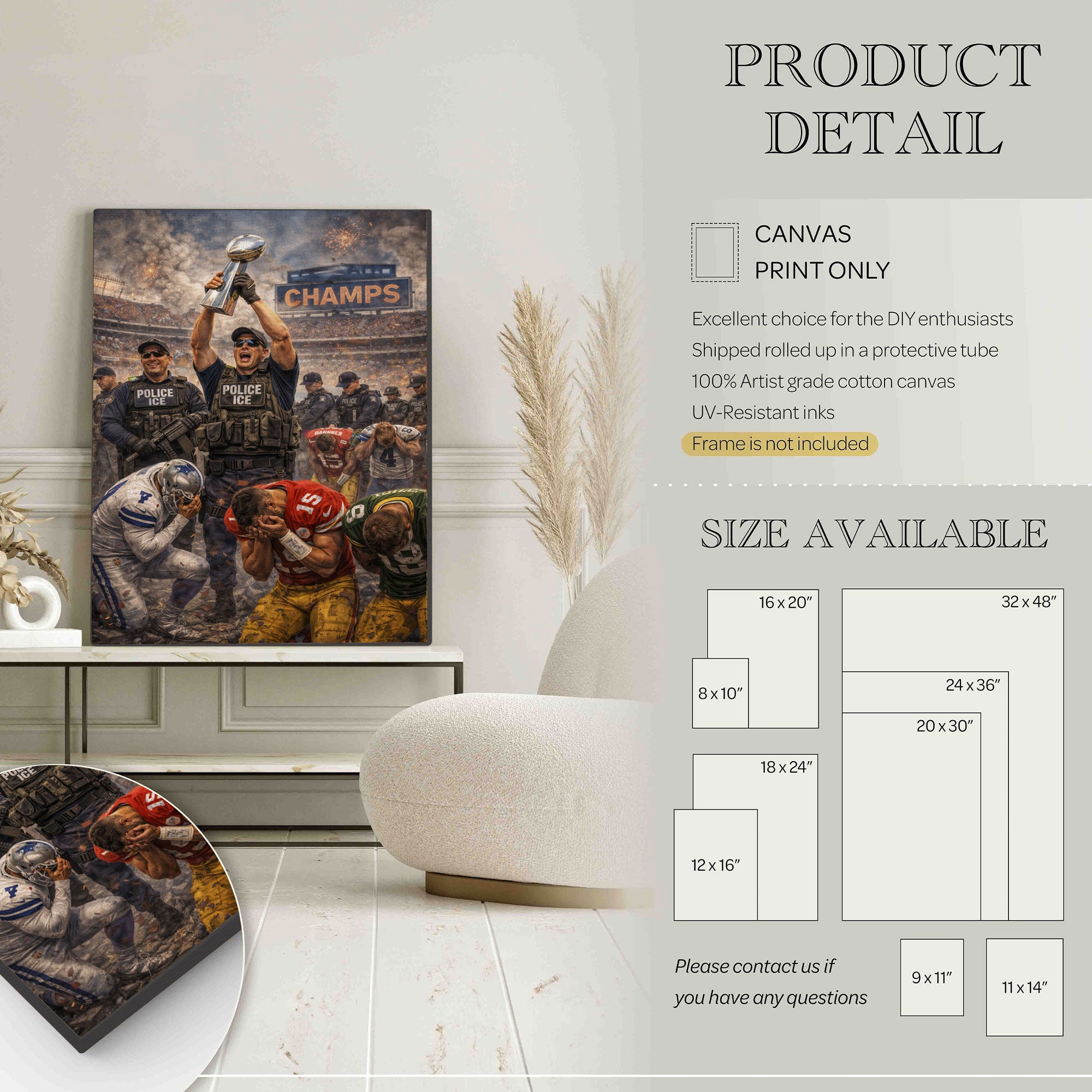 American Football Championship Police ICE Canvas Wall Art, American Football League Gift Ideas For Football Fans