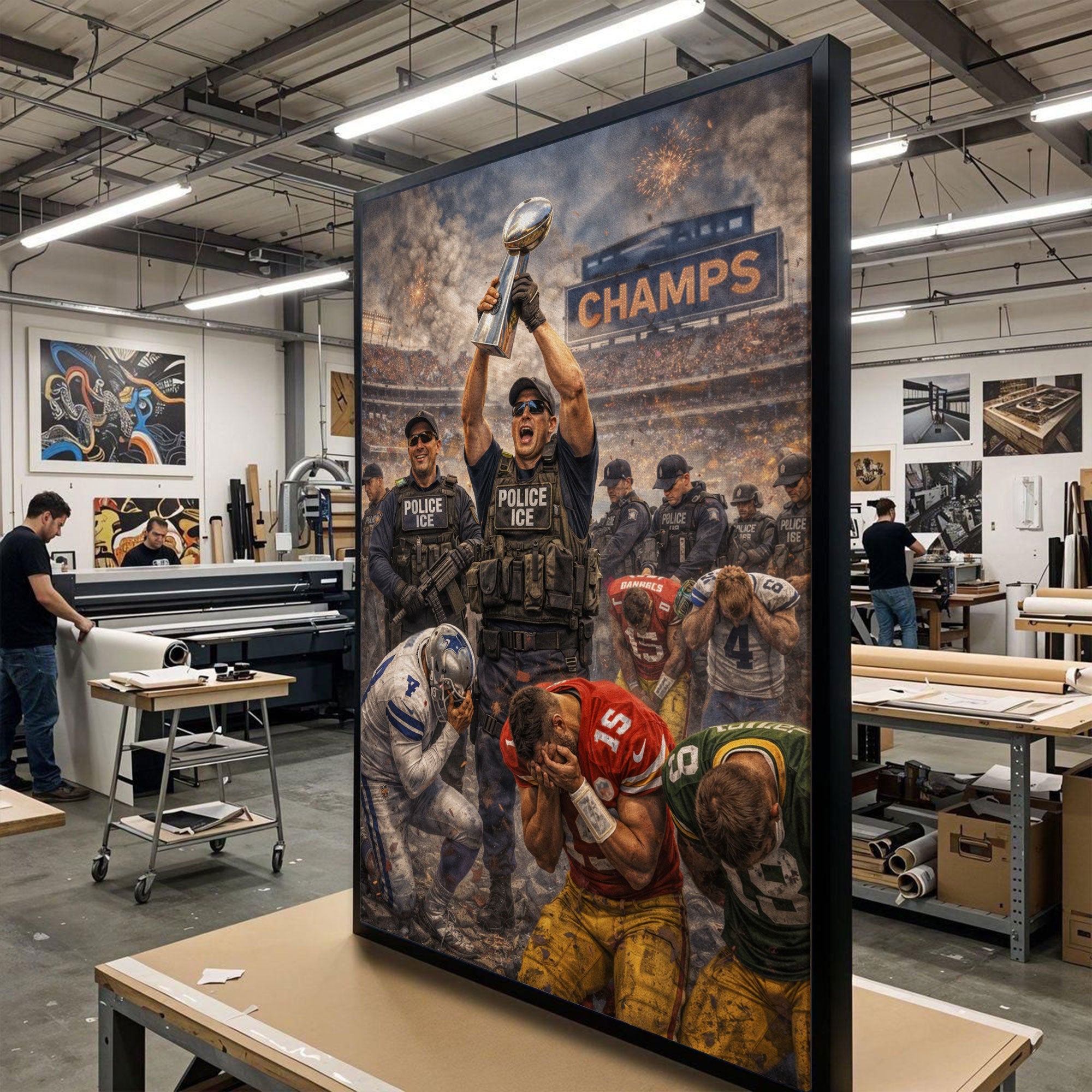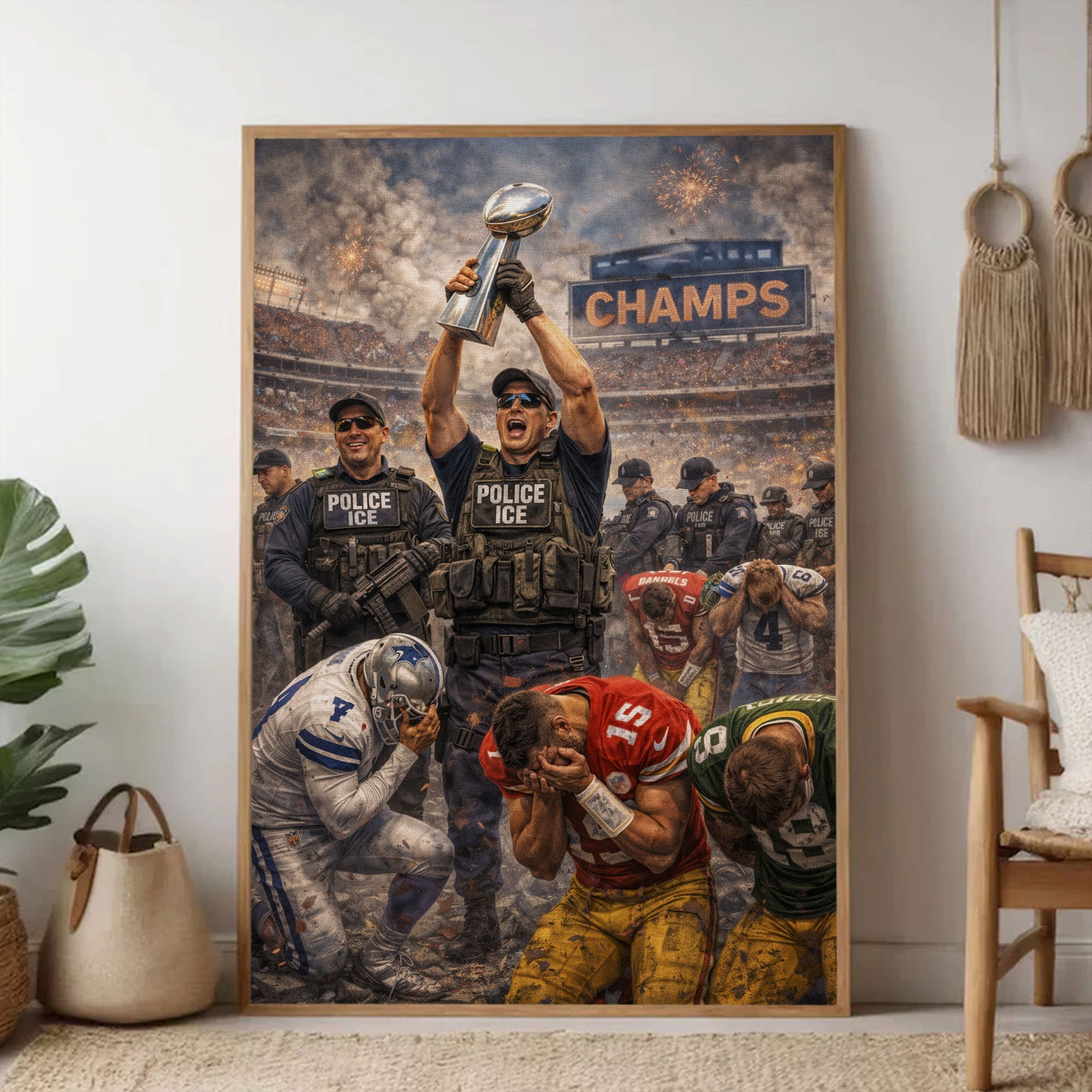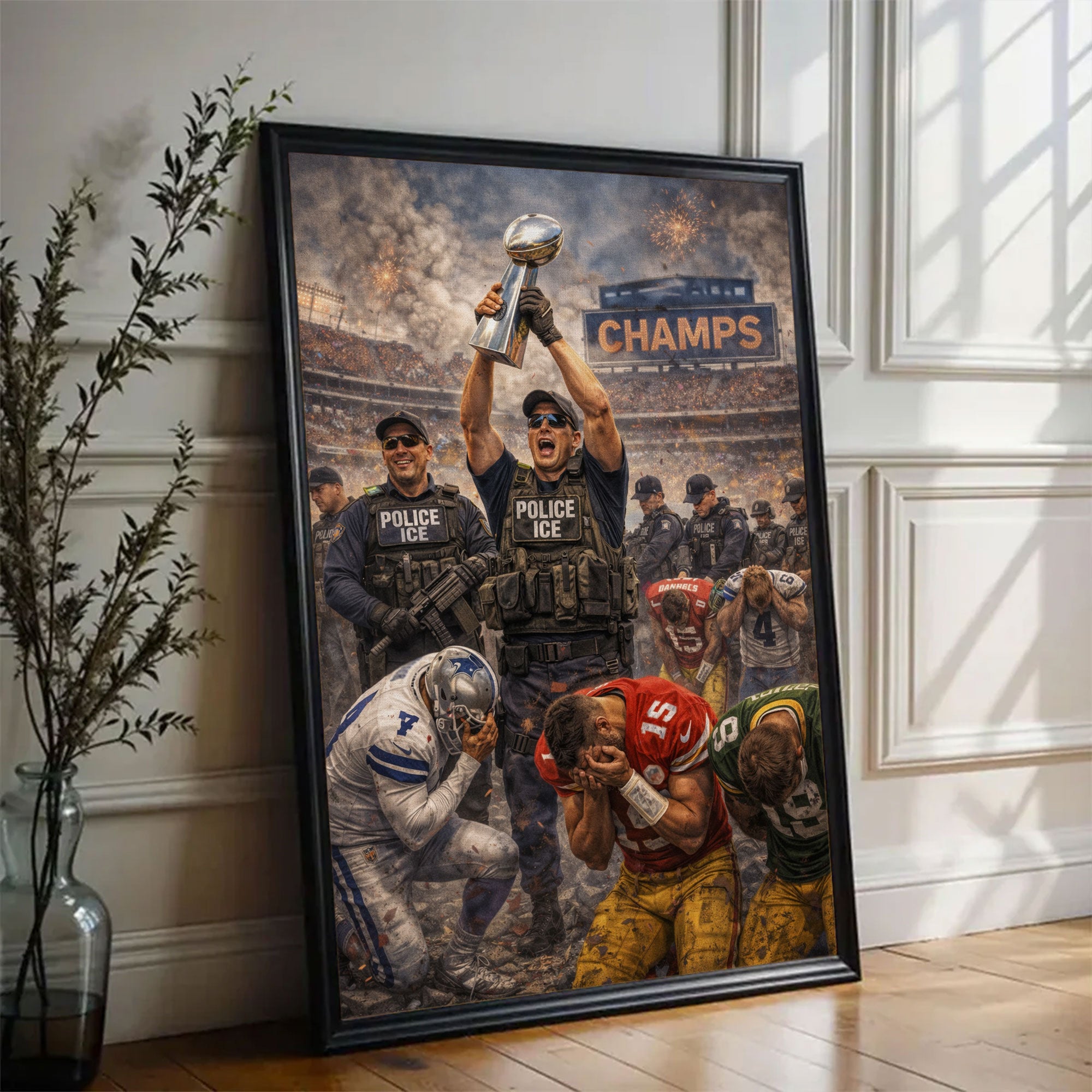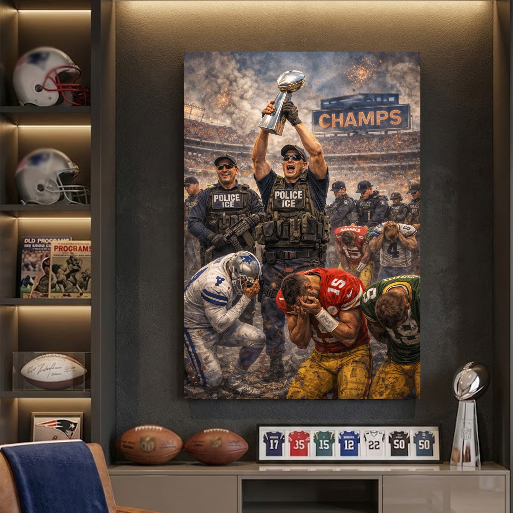 American Football Championship Police ICE Canvas Wall Art, American Football League Gift Ideas For Football Fans