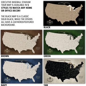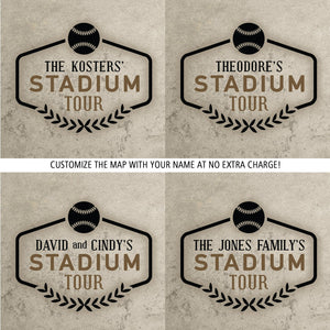 The Perfect Gift for Any Baseball Fan. Our Baseball Stadium Tour Map, showcases the locations of all 30 Major League Baseball stadiums and the Baseball Hall of Fame! Each stadium is marked with a baseball icon to commemorate your visit.