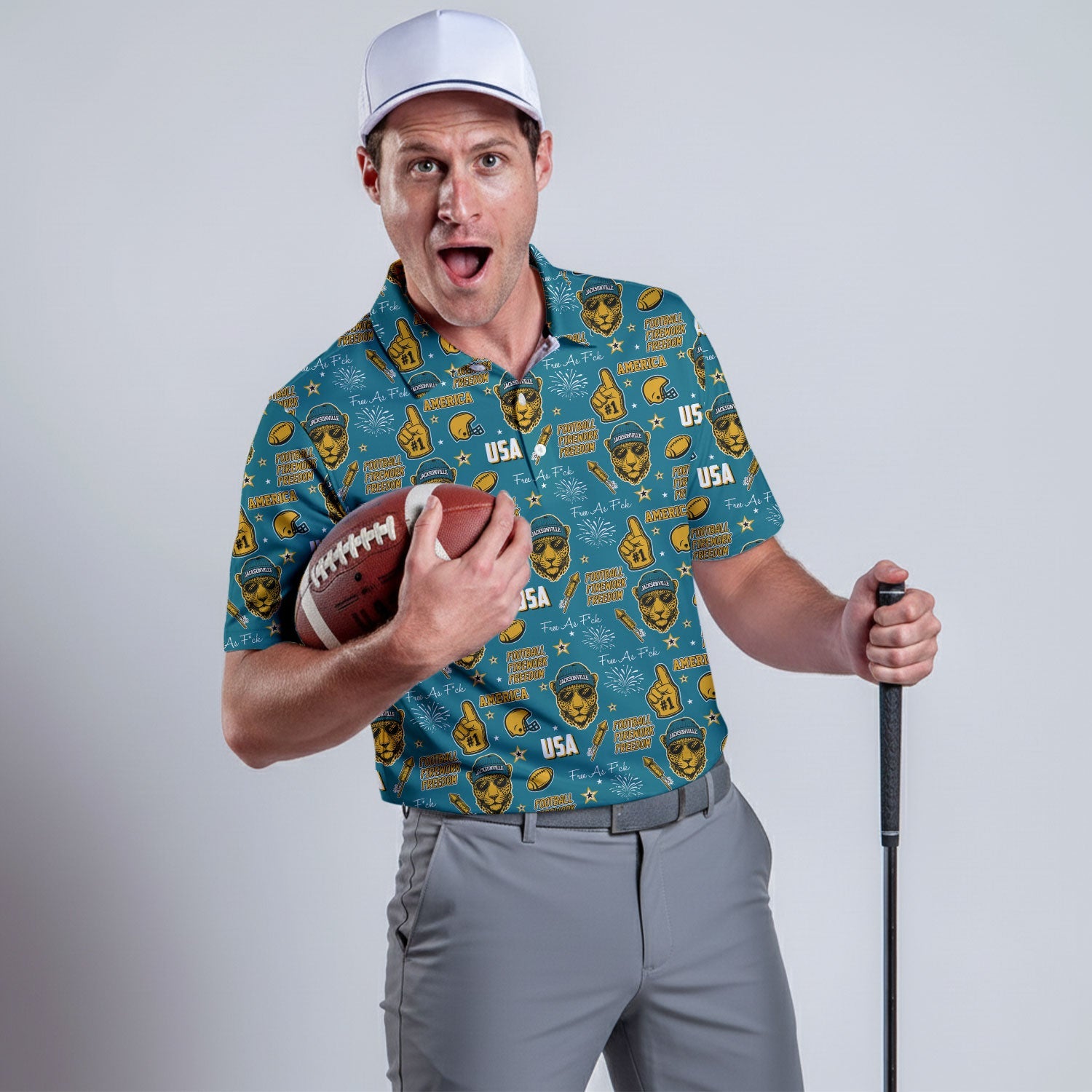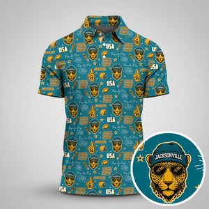 Anthropomorphic Jaguar Teal Black Gold Sport Polo, American Football League Gift Ideas For Football Fans