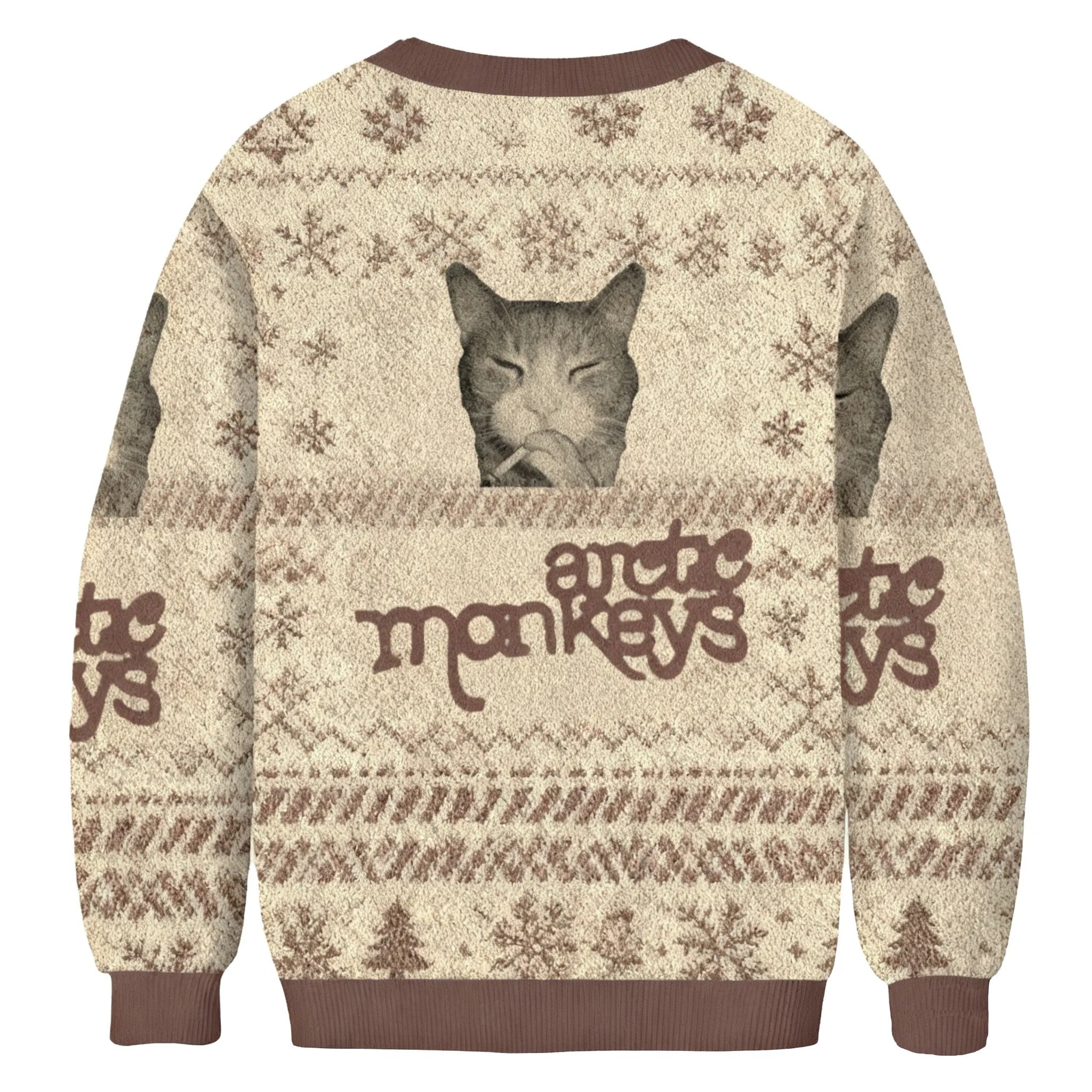 Arctic Monkeys Smoking Cat Funny Ugly Sweater, Ugly Xmas Sweater, Christmas Ugly Sweatshirt