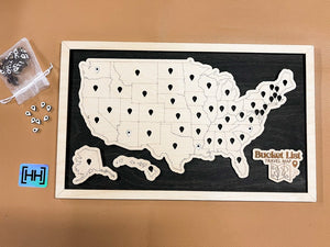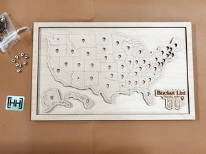 National Parks Travel Map With Pins, National Parks Wooden Map Tracker, Fathers Day Gift