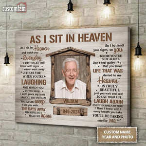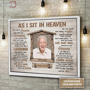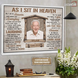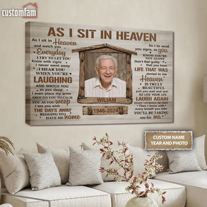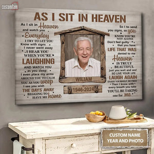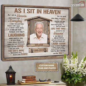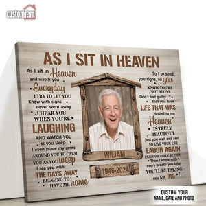 As I Sit In Heaven Personalized Canvas Prints, Custom Photo And Name Memorial Framed Canvas, Loss Dad Mom Sympathy Gifts, Remembrance Gifts For Lovers