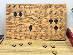 This top 50 Arizona Golf Courses Tracker Board is meant for any big fan of Golf in the AZ. My husband and I want to improve our golf game so I built this board to track what golf courses we’ve played so far. This board makes the perfect gift for any big time golfer, or anyone just getting into it wanting to see some of the beautiful courses across the state. Whether you’re a bogey golfer or a scratch golfer, this board will keep you aiming for new goals!