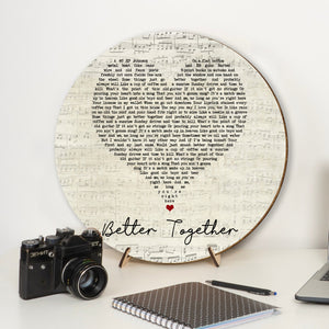 Barry Manilow Can't Smile Without You Script Heart Song Lyric Print Round Wood Sign, Wood Sign For Home