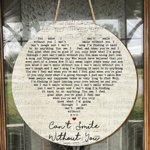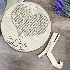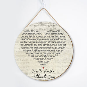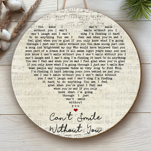 Barry Manilow Can't Smile Without You Script Heart Song Lyric Print Round Wood Sign, Wood Sign For Home