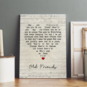 "Old Friends" is a touching song that reflects on the beauty of enduring friendships and the memories created over the years. The lyrics express gratitude for the support, love, and companionship that old friends provide, making this canvas a meaningful tribute to those who have stood by us through thick and thin.