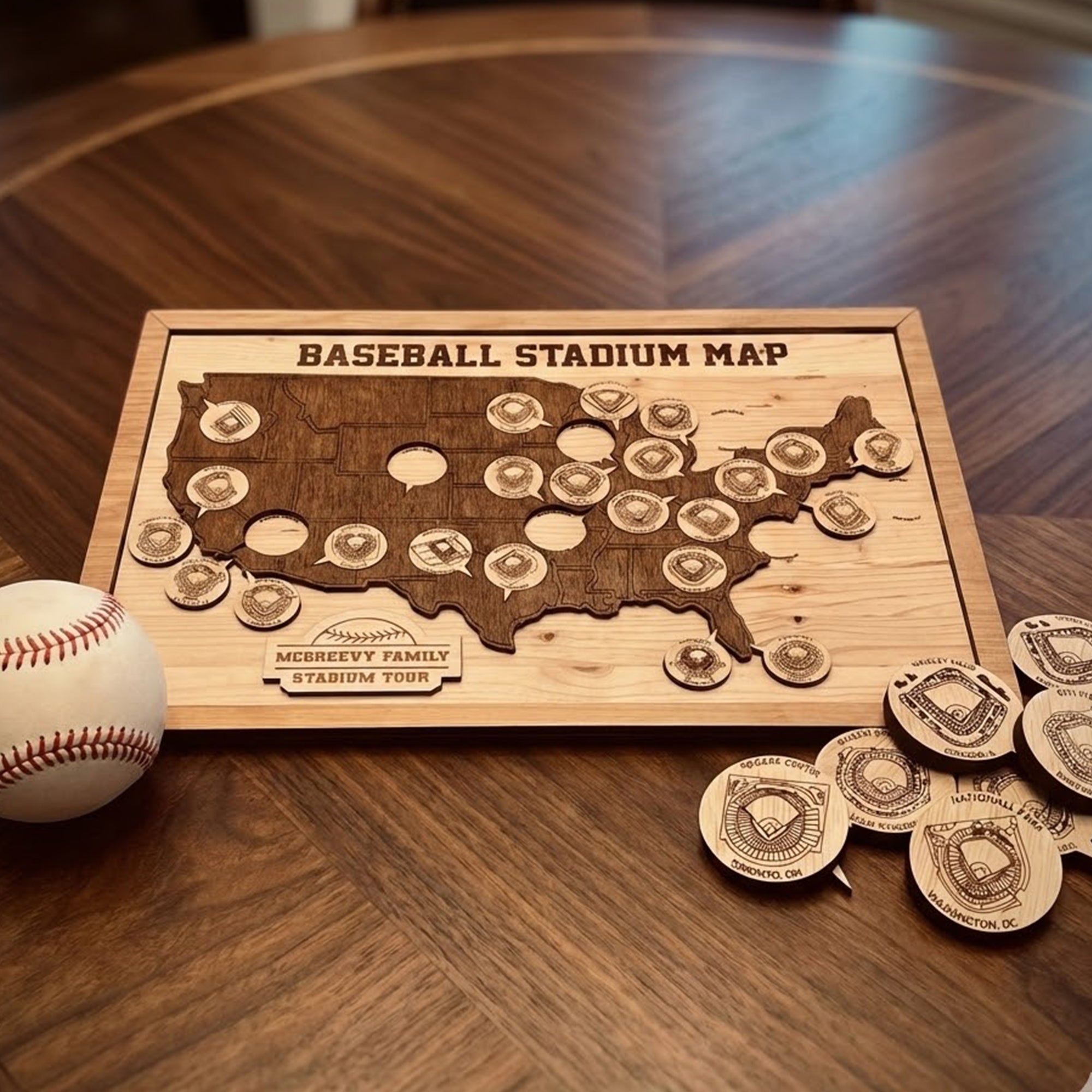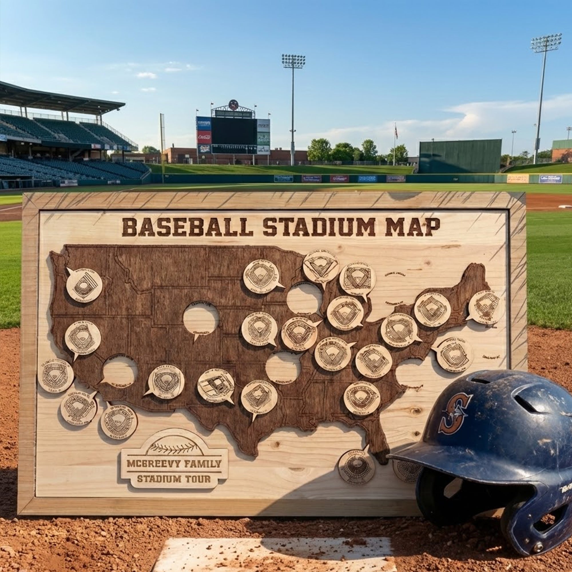 Baseball Stadium Map, Wooden Wall Map, Baseball Tracker, Gift For Baseball Lover