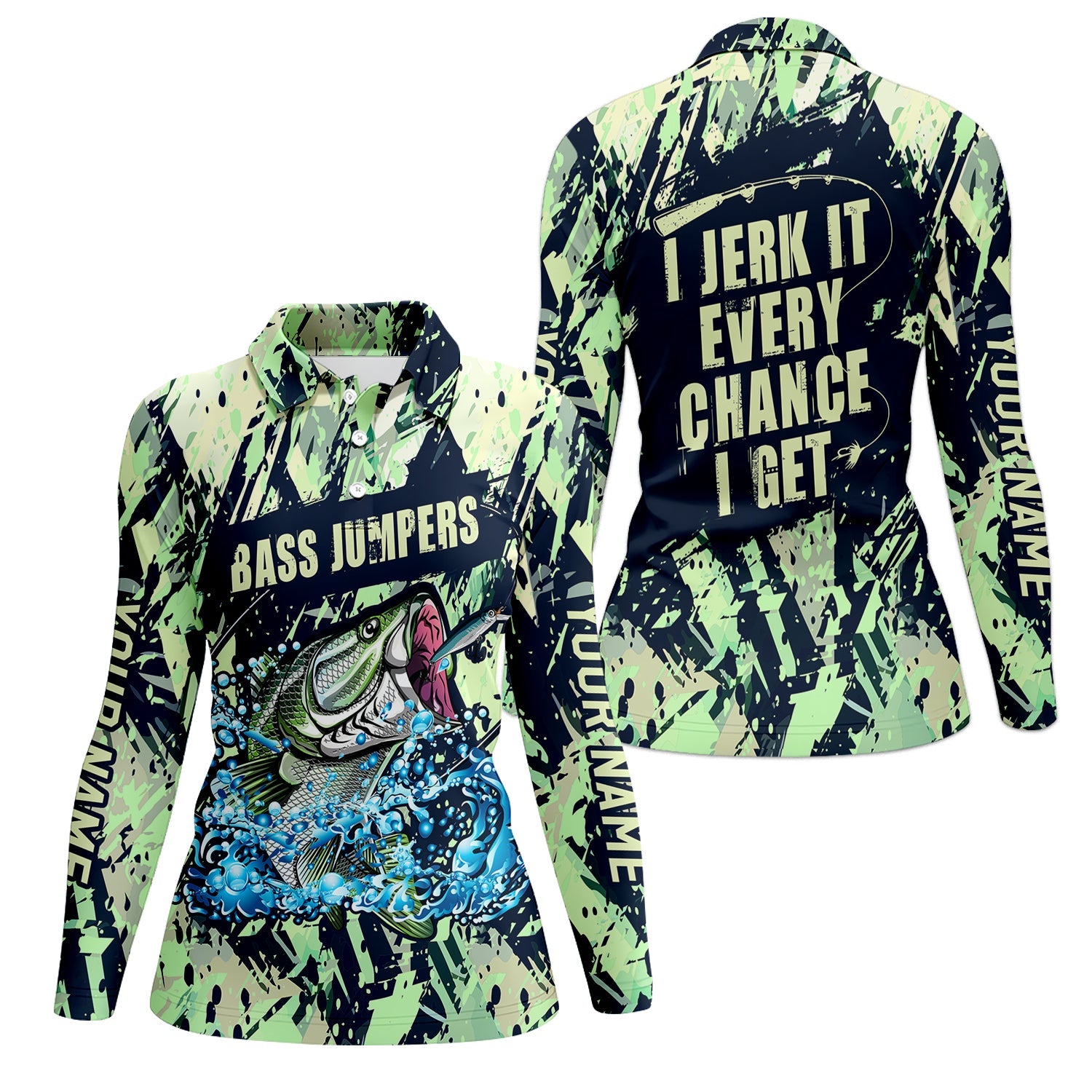 Bass Jumpers Fishing Shirts, I Jerk It Every Chance I Get, SPF Long Sleeve Shirts Womens, Female Fishing Shirts