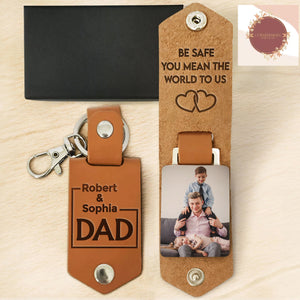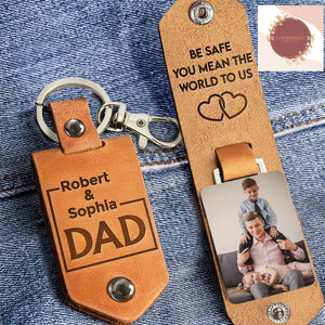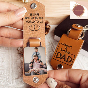 Be Safe You Mean The World To Us Personalized Photo Leather Keychain, Gift for Dad