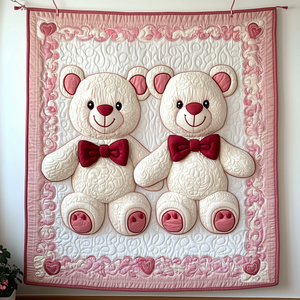 Bear Couple Cute Pink Quilt Blanket, Valentines Couple Gift, Valentine Blanket