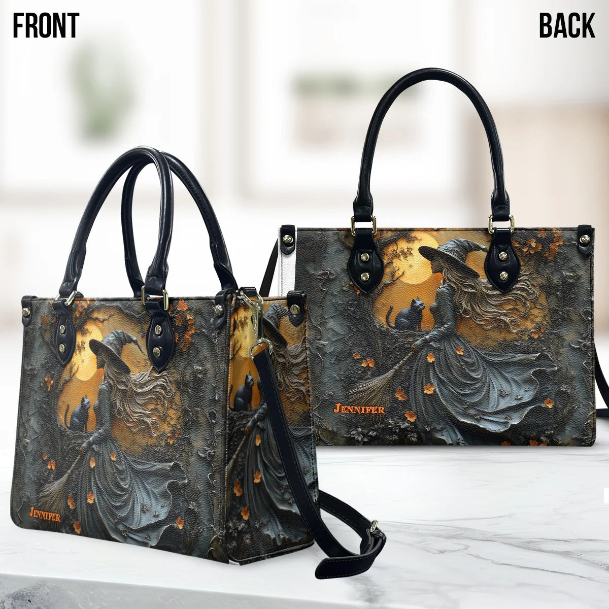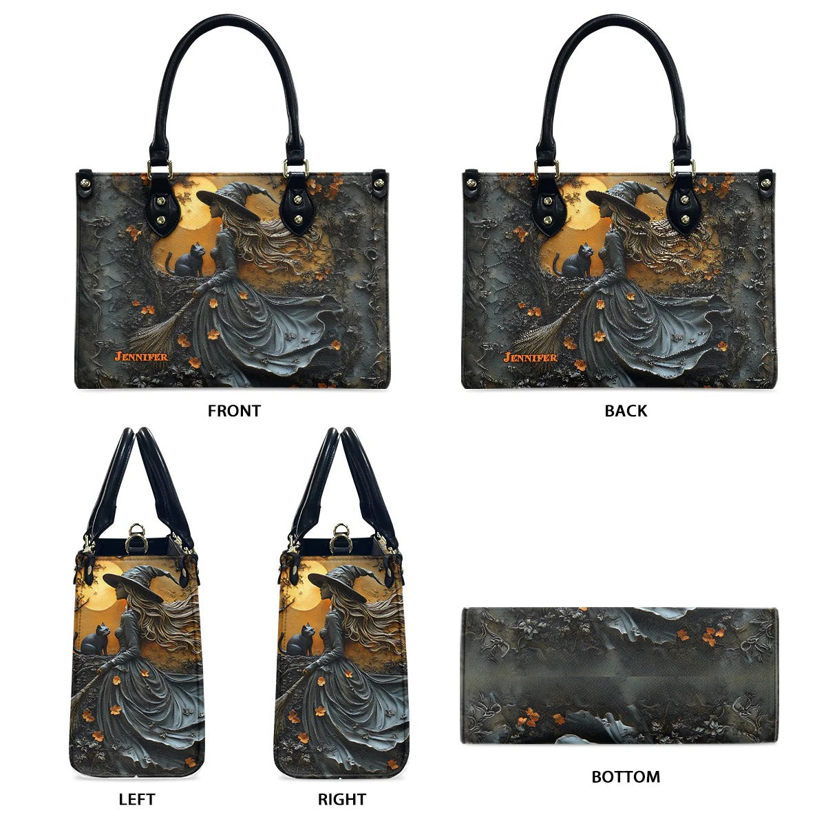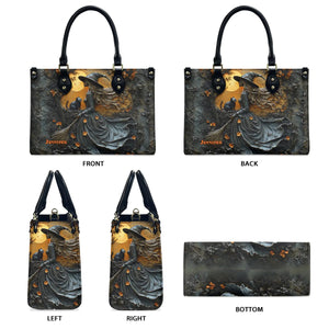 Beautiful Witch & Her Black Cat - Personalized Witch Leather Handbag - Boho Handbag - Leather Shoulder Bag
