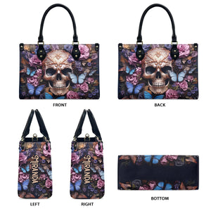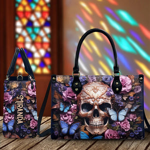 Beauty Of The Dark Skull Roses Butterflies - Personalized Skull Leather Handbag - Boho Handbag - Leather Shoulder Bag