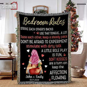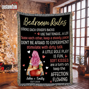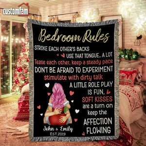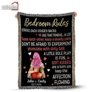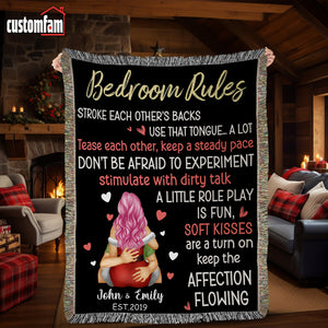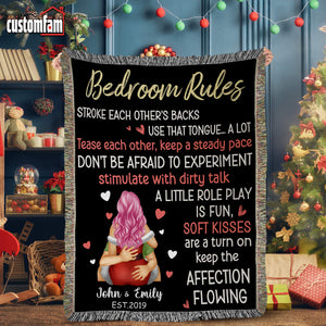 Bedroom Rules Personalized Naughty Couple Woven Blanket, Christmas Blanket, Gift For Couples