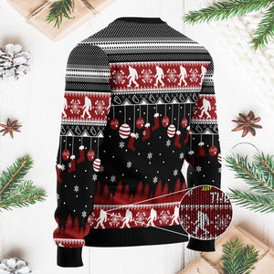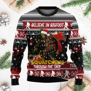 Believe In Bigfoot Squatching Through The Snow Funny Christmas Ugly Sweater, Ugly Christmas Sweater