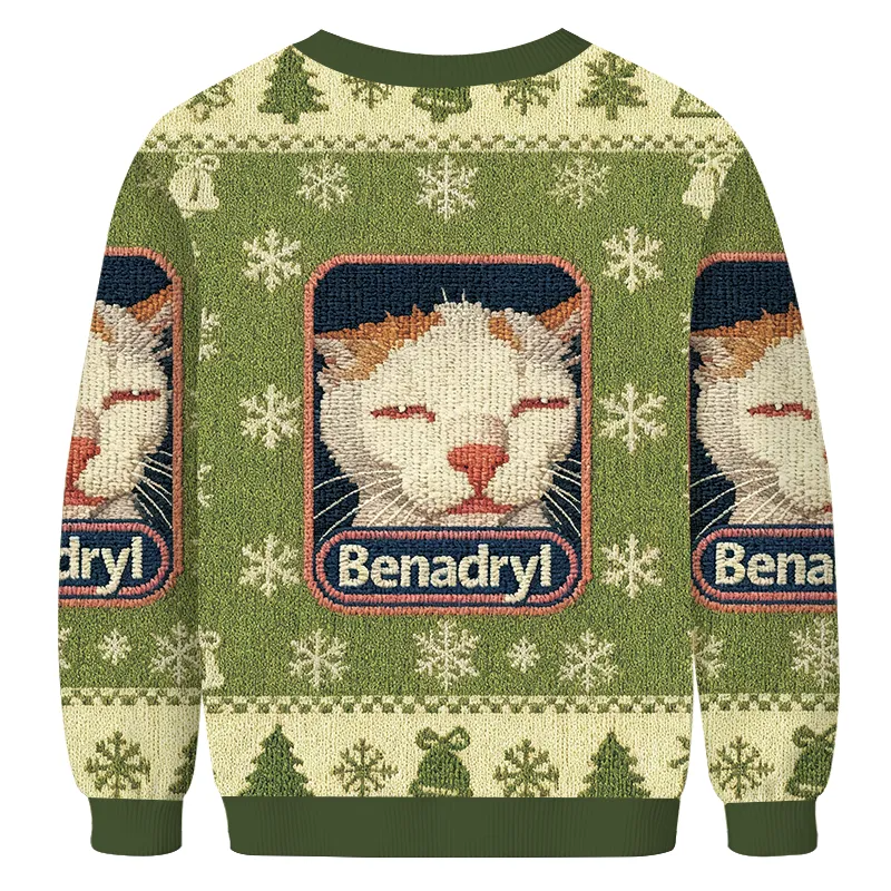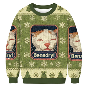 Benadryl Cat Meme Green Vintage Christmas Sweater, Ugly Xmas Sweater, Christmas Ugly Sweatshirt