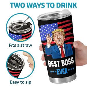 Best Boss Ever Funny Trump Personalized Stainless Steel Tumbler, 20oz Insulated Tumbler, Patriotic Gift