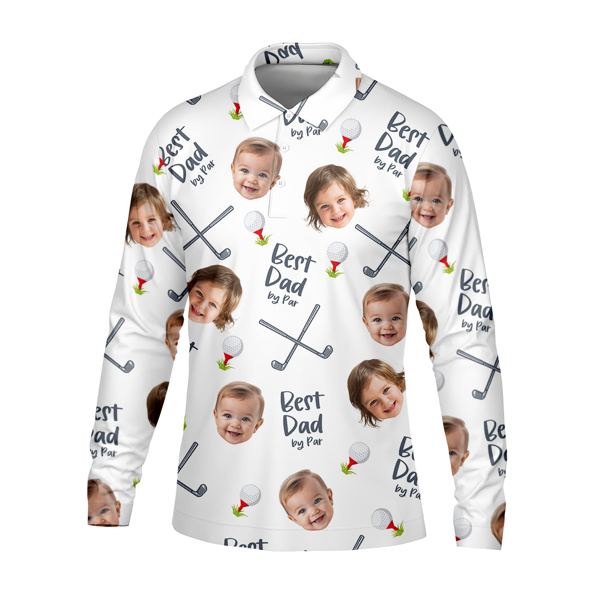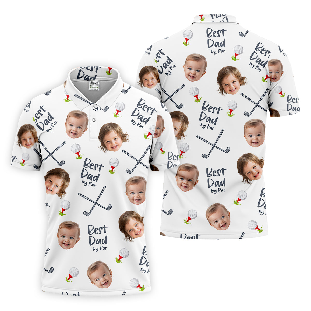 Best Dad By Par Custom Face Golf Shirt, Personalized Golf Shirt, Shirts for men, Gift for Dad