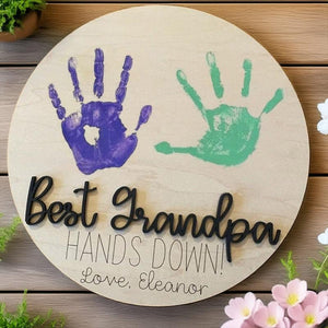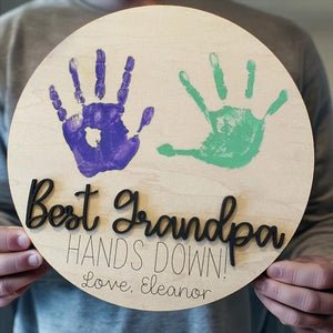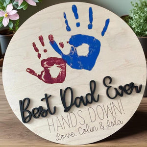 Best Dad Ever Hands Down Custom Handprint Wood Sign, Father's Day Gifts