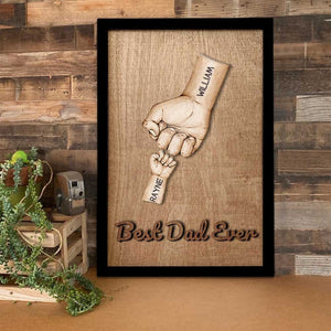 Best Dad Ever Personalized Dad and Kids Fist Bump With Name Engraving Wood Sign, Father's Day Gifts, Gifts For Dad