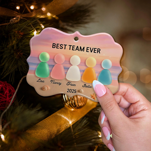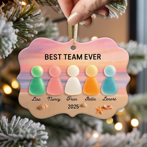 Best Team Ever Acrylic On Ceramic Friendship Decor Xmas Ornament, Sea Glass Christmas Ceramic Ornament