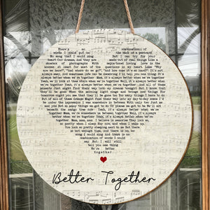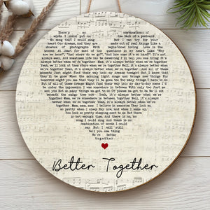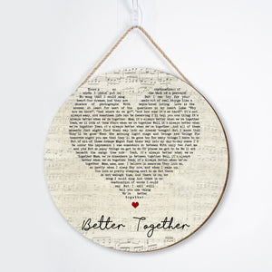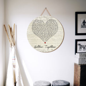 Better Together Jack Johnson Script Heart Song Lyric Art Print Round Wood Sign, Wood Signs For Home