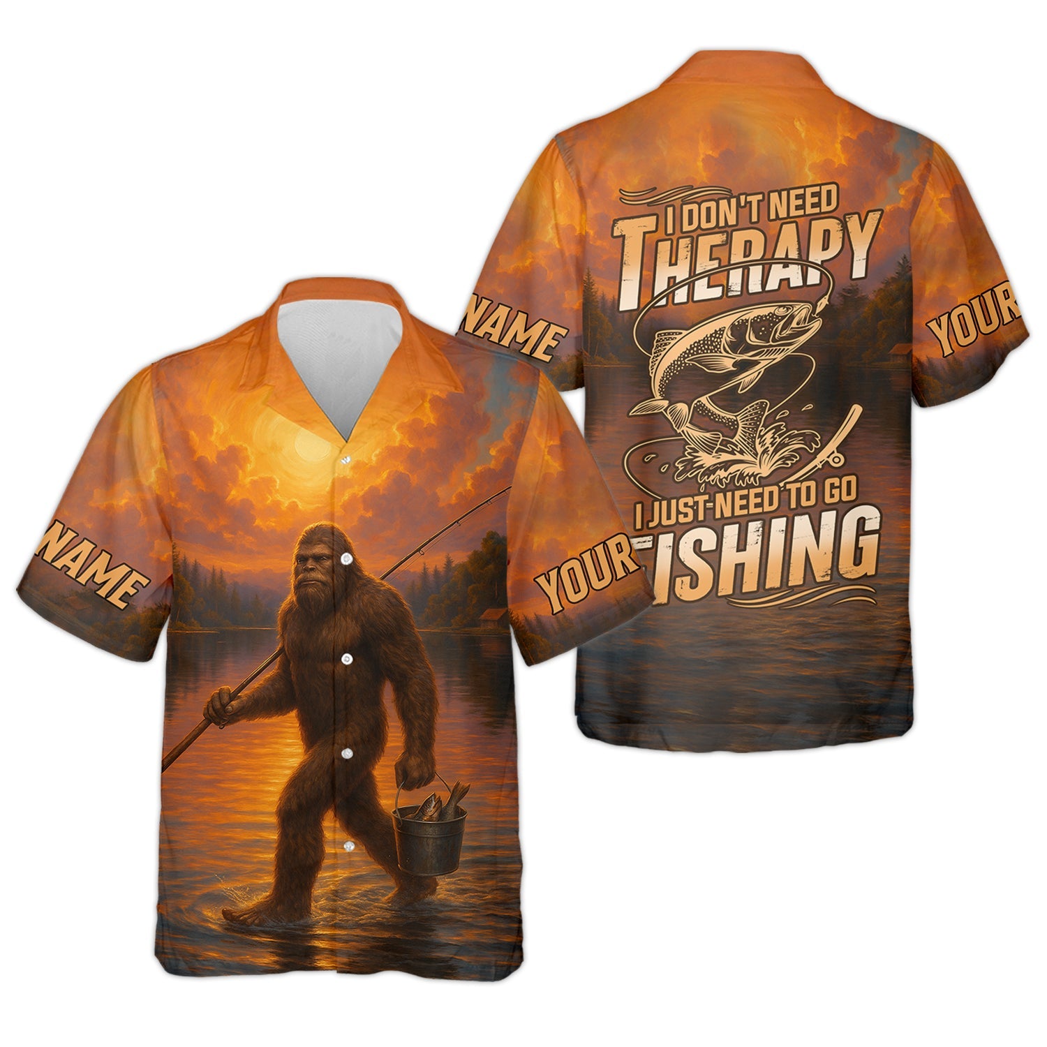 Bigfoot Fishing Shirt, Fishing Therapy SPF Shirts For Men, Fishing UPF Shirts, UV Shirts For Men